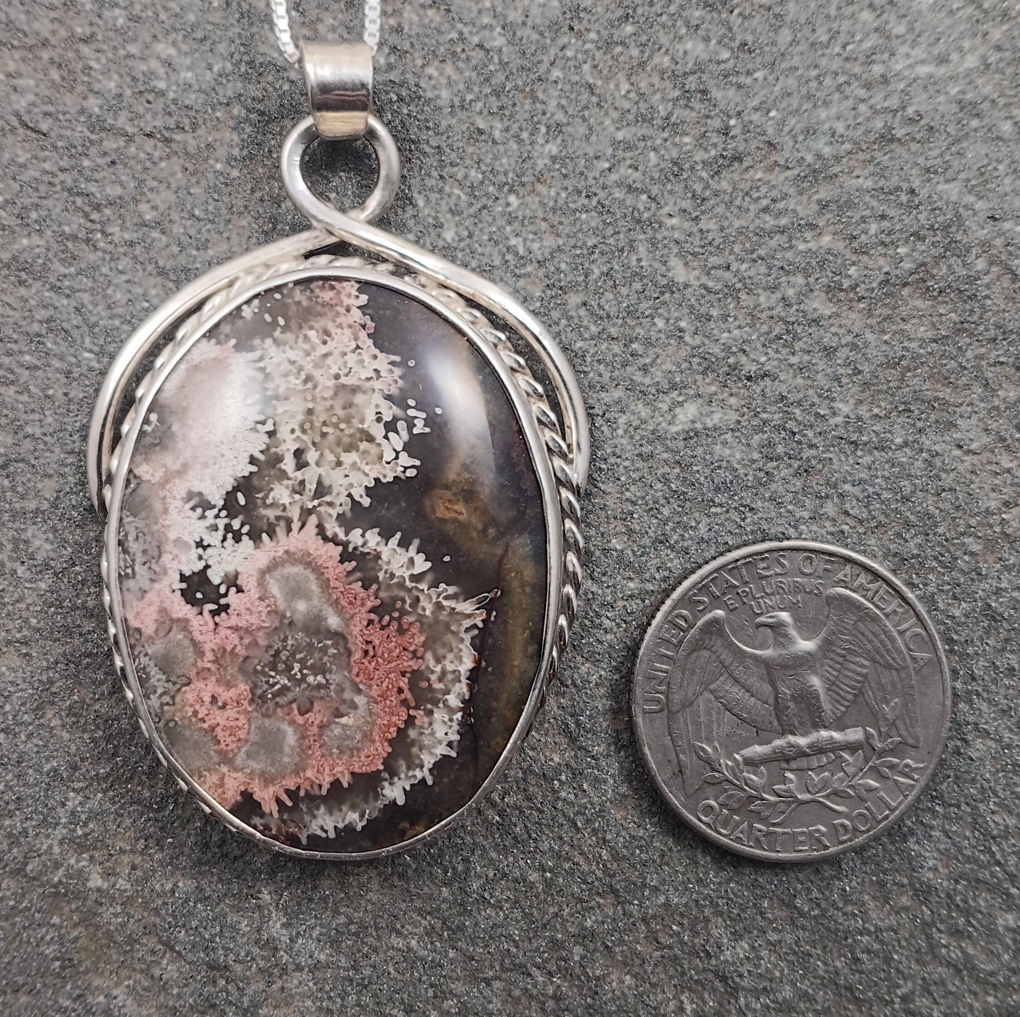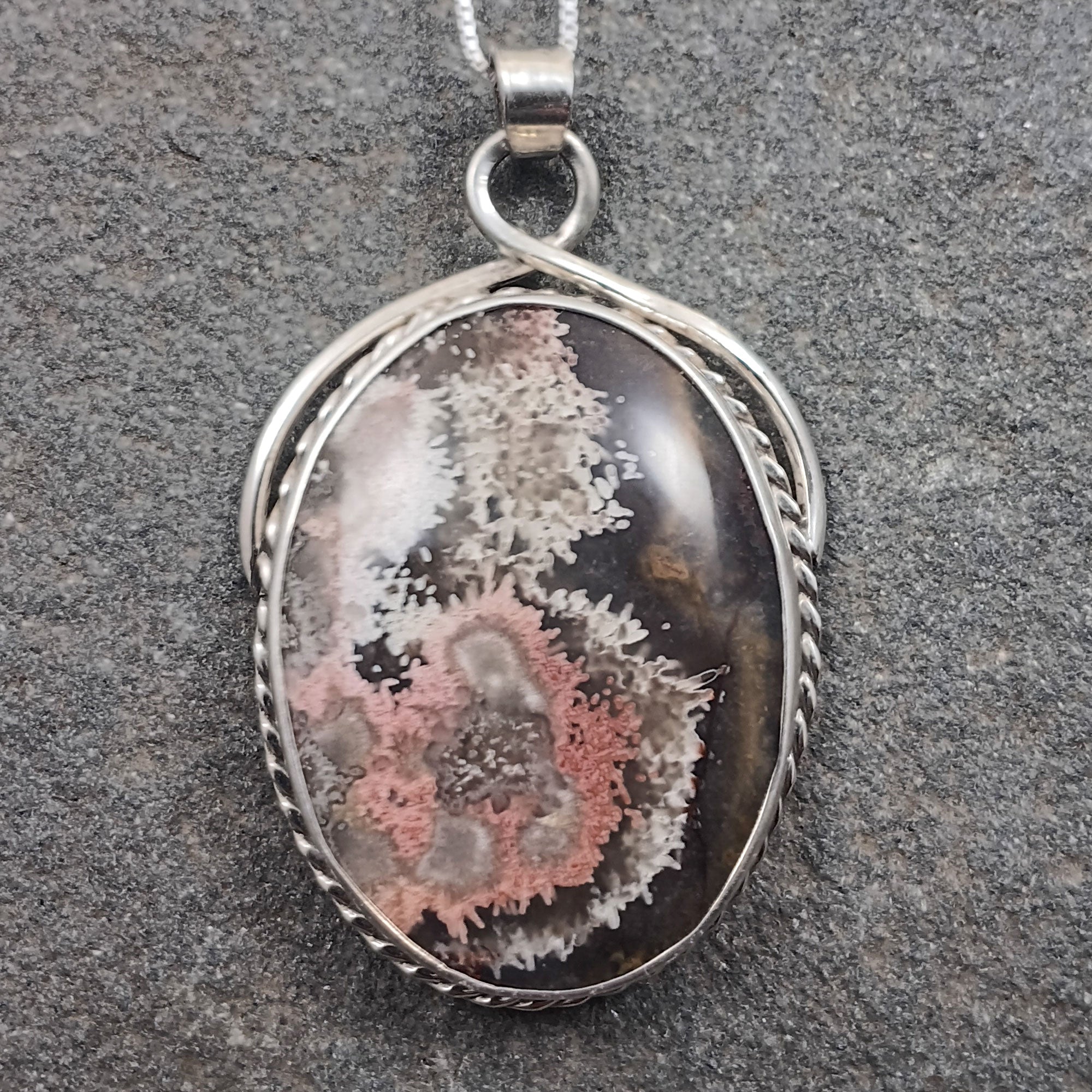 Flower Agate Gemstone Sterling Silver Handcrafted Pendant