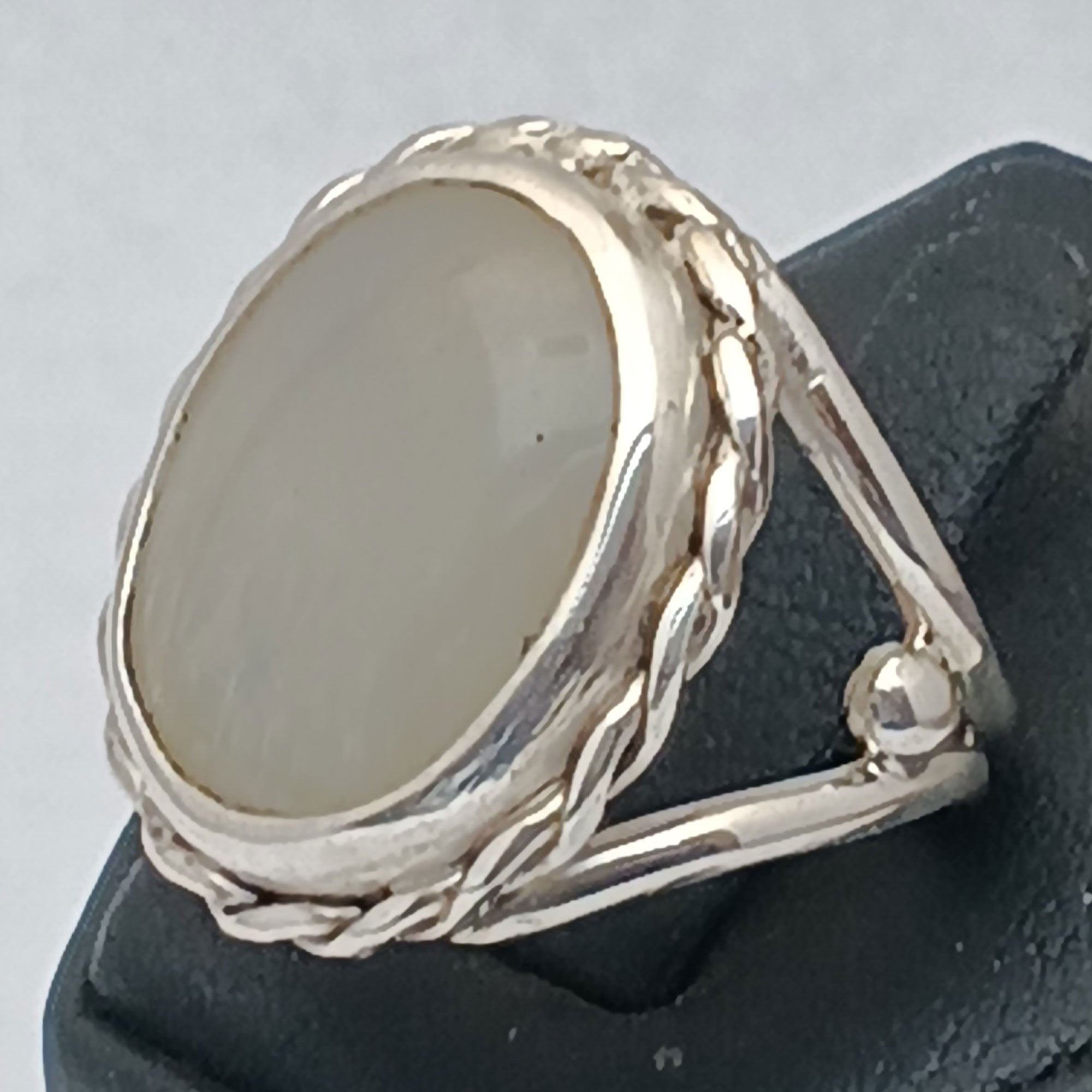 This is some very clear Moonstone with an amazing flash across the entire stone and is set in a sterling silver art nouveau wave design.