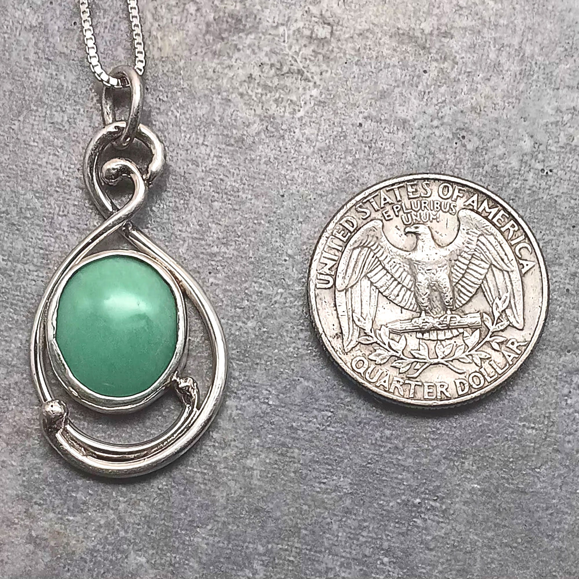 The entire pendant measures 1 3/8 by 3/4 inch.